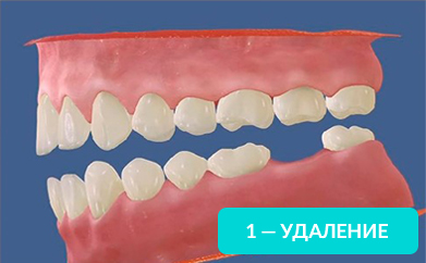 На рисунке видно, какие щели между зубов образуются уже через год, после удаления.