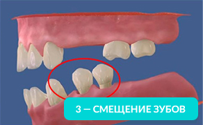 Оставшиеся зубы смещаются в сторону и вытягиваются из десны. Зубам необходимо иметь опору (особенно при жевании). Если такой опоры нет, то они начинают ее искать и выдвигаться из десны.